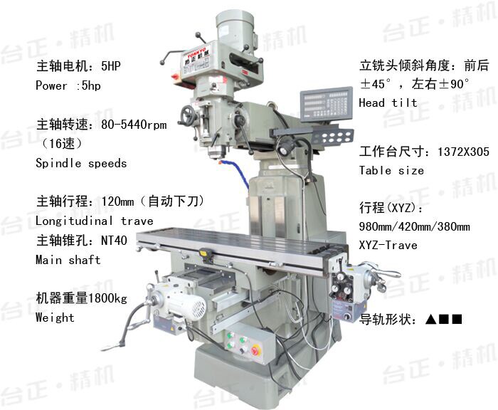 拓正5號銑床性能特點: